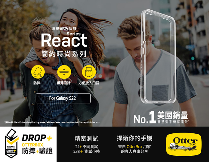 OtterBox Samsung Galaxy S22 React輕透防摔殼