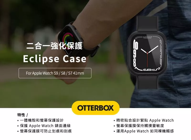 OtterBox Apple Watch S9 / S8 / S7 41mm Eclipse 高透防護玻璃錶殼
